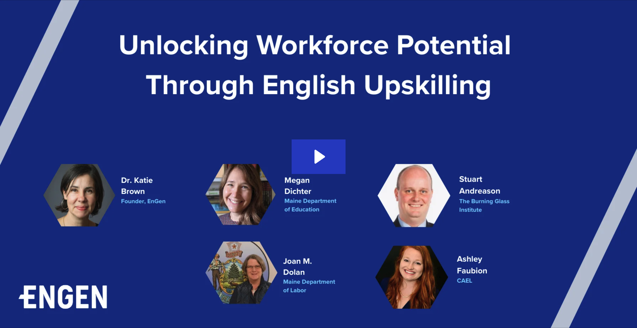 To explore the powerful ripple effects of English upskilling, EnGen brought together leaders from the Burning Glass Institute, CAEL, the Maine Department of Labor, and the Maine Department of Education. Their conversation highlighted how investing in language skills creates more resilient talent pipelines, boosts retention, and fuels economic mobility—for everyone.
