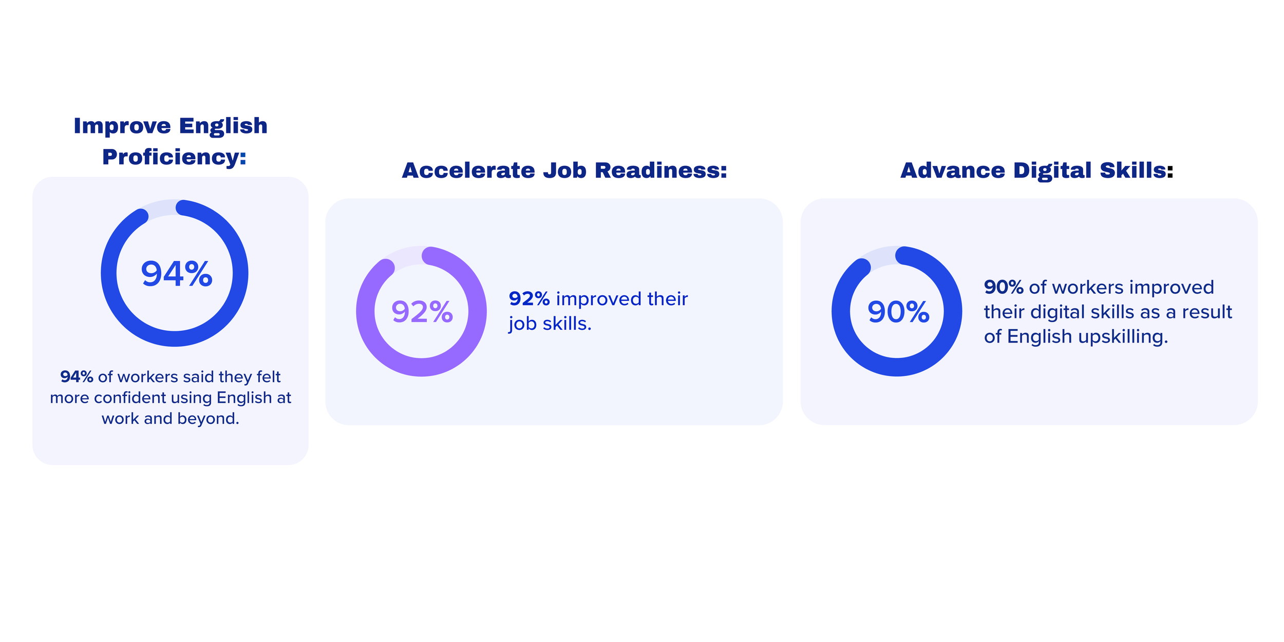 Cómo trabajamos: EnGen tiene una metodología comprobada para mejorar simultáneamente el dominio del inglés y las habilidades laborales de los estudiantes, y se ha demostrado que mejora la retención y el reclutamiento de empleados.